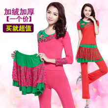 多拉芬广场舞服装三件套秋装新款长袖上衣舞蹈服广场舞牛奶丝裤子