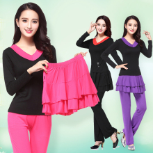 2016广场舞服装新款套装秋冬V领莫代尔长袖上衣中老年舞蹈跳舞服