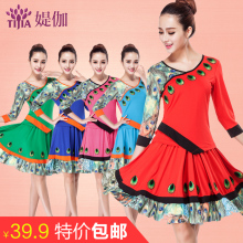 媞伽广场舞服装新款春夏季两件套装绣花长短袖中袖孔雀跳舞蹈衣服