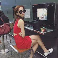 2017夏季新款女装韩版显瘦港味包臀裙子女夏天性感露腰红色连衣裙