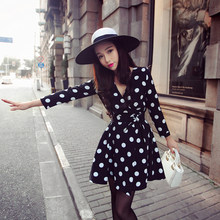 2016秋装新款女装潮小香风长袖波点裙子秋季性感V领蓬蓬裙连衣裙