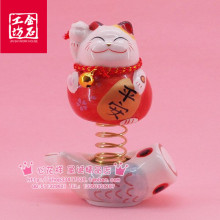 金石工坊 呆萌元气猫 弹簧招财猫 仪表台摆件 车饰 商务 婚庆礼品