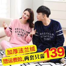 秋冬季情侣睡衣卡通珊瑚绒女加厚长袖法兰绒男士可爱女家居服套装