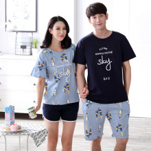 夏天情侣睡衣夏纯棉卡通短袖短裤韩版男女家居服全棉情侣夏款套装