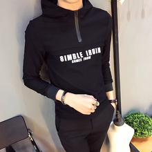 2017新款春季连帽t恤男长袖韩版修身字母印花青少年学生上衣服潮