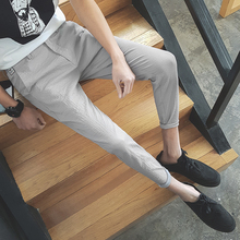 夏季英伦纯色九分裤男韩版修身小脚裤男潮简约黑色裤子男士九分裤