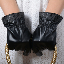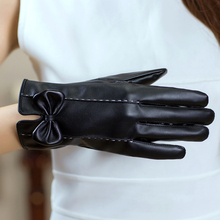 皮手套女秋冬季短款可爱蝴蝶结个性皮手套加绒骑车防风开车手套女