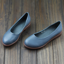 原创棉麻森系女鞋子 真牛皮擦色复古文艺女鞋 春夏季浅口平跟单鞋