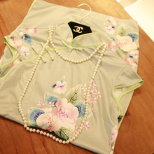 依依旗袍裙短款夏季修身复古改良时尚丝绸少女旗袍连衣裙短袖日常