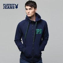 花花公子秋款男士长袖卫衣男潮牛仔风格字母男款拉链卫衣外套