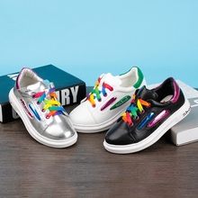 儿童板鞋彩色系带童鞋韩版休闲男女童彩虹鞋白色运动板鞋单鞋潮