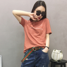 欧洲站2017夏新款欧货潮时尚字母印字修身T恤韩范圆领纯色短袖女