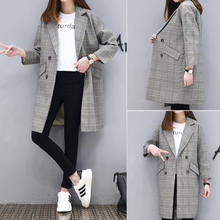 欧洲站2017春新款欧货潮显瘦休闲小西装上装外套女格子中长款风衣