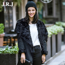 2016新款皮毛一体外套女大衣真皮皮衣女中长羊毛皮草羊羔毛女M139