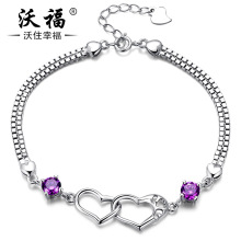沃福925银饰手链女心形韩版首饰品手饰生日礼物生日礼物送女友
