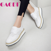 高蒂2016夏季新款英伦风厚底松糕鞋系带休闲鞋牛皮镂空透气单鞋女