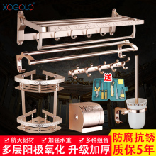卫生间毛巾架香槟金浴室置物架五金挂件套装欧式金色太空铝浴巾架