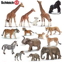 德国思乐schleich动物模型仿真玩具套装母亚洲象斑马灰熊驼鸟狮豹