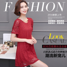 2017夏季新款大码女装220斤胖mm蕾丝连衣裙中长款显瘦短袖裙子潮