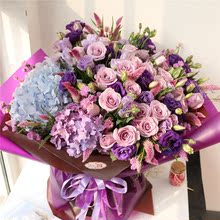 玫瑰花束鲜花速递绣球大花束紫色女友求婚生日武汉同城花店情人节