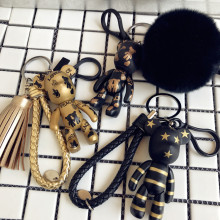 新品暴力熊钥匙扣编织链男女创意兔毛球流苏公仔汽车包包挂件礼物