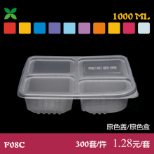 饭盒王F08C一次性饭盒透明1000ml 四格塑料快餐盒 外卖打包盒