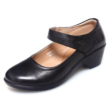 木林森春秋新款女鞋休闲妈妈鞋正品头层牛皮浅口坡跟中老年女单鞋