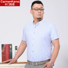 卡门凯思 夏大码男装短袖衬衫男士加肥加大天丝肥佬免烫印花衬衣