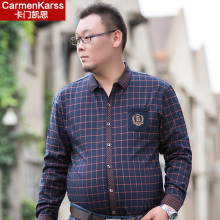 卡门凯思春秋大码男装长袖衬衫加肥加大胖子男士格子肥佬宽松衬衣