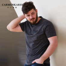 卡门凯思加肥加大夏季短袖T恤 大码男装印花圆领T恤胖子肥佬半袖