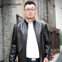 男士真皮皮衣加肥加大 海宁皮衣绵羊皮 大码宽松立领短款皮夹克