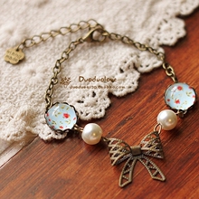 满包邮 时光宝石饰品原创手工 复古蝴蝶结珍珠 手链韩国女批发