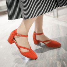 2016欧美新款方头单鞋女粗跟凉鞋绒面粗跟绑带百搭舒适包邮女鞋子