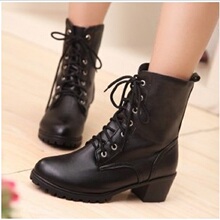 2017秋新款机车靴防水台欧美风反季圆头中跟马丁靴前系带女靴子