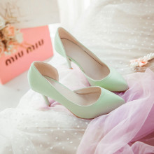 2016春夏新款欧美风性感糖果色漆皮水钻尖头高跟浅口细跟女单鞋