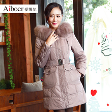 爱博尔2016新款狐狸毛加厚羽绒服修身女士中长款羽绒服欧洲站1230