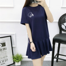 2017春装新款潮卡通刺绣短袖圆领T恤连衣裙宽松荷叶边打底裙学生