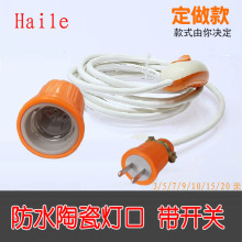 海乐E27螺口灯座带开关悬吊式带线灯头两相插头防水陶瓷灯口 包邮