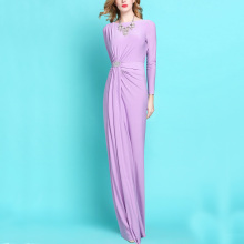 静美如初~一字领希腊风琴百褶超长欧美长袖年会宴会晚礼服连衣裙
