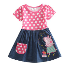 童装2017夏装新款女童圆点卡通圆领短袖连衣裙拼接裙子外贸