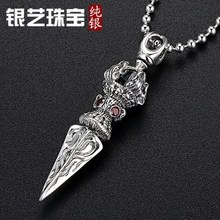 金刚降魔杵!925银泰银男士项链吊坠 霸气 长款毛衣挂坠项坠 霸气