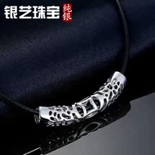 【送证书】路路通 99足银吊坠 男士项链纯银挂坠 潮 黑色皮绳复古