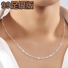 【多尺寸】99纯银男士项链 情侣女 短款 锁骨无吊坠链子 足银