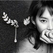 不对称925银耳钉女 可爱日韩版时尚叶子耳坠简约个性耳环耳饰品