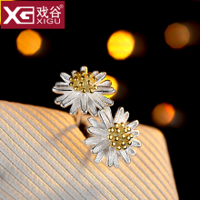 小雏菊耳钉花朵s925银耳钉太阳花菊花耳环女日韩国风个性气质甜美