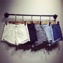 低腰破洞黑白色牛仔短裤女毛边2017春夏修身显瘦韩版磨破a字热裤