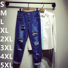 大破洞牛仔裤女胖mm200斤九分裤韩版宽松加肥加大码bf风乞丐长裤