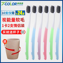 [送杯子]七彩净成人竹炭软毛牙刷炭能量刷毛炭丝细毛牙刷10支