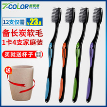 [送杯子]七彩净成人竹炭软毛牙刷备长炭刷毛炭丝细毛牙刷12支