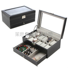 高档皮革手表收纳盒 双层首饰盒 戒指耳环多功能珠宝收纳箱 包邮